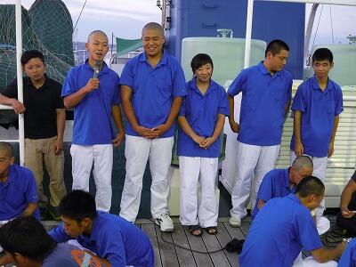 天候にも海況にも恵まれたわりには、体調を壊す生徒がいたため、9月の長期乗船実習に向け健康管理にも気を配って欲しいと船長から話がありました。