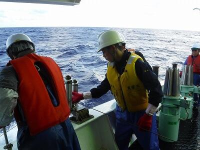 当面この日和が続く模様です。実習生は大揺れの甲板上で淡々と作業分担を