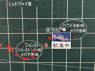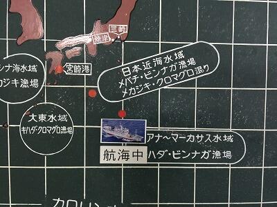 八丈島を過ぎました。順調に北上しています。 実習生は昨日の課題研究発表