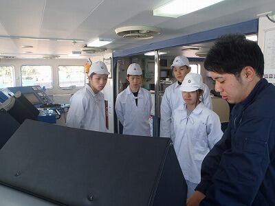 2Aの生徒は航海系のクラスですが、機関当直(作業)も体験します。