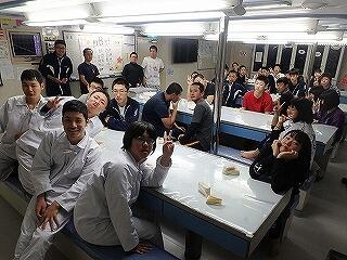 携帯電話・TV・ゲーム等もなく制限の多い船内生活ですが、33名のチームワークで当直や操業実習を乗り切ってください。たくましく成長した姿を見ることができるのを楽しみにしています。