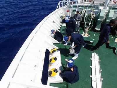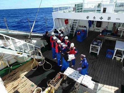 午後からウエーク島(アメリカ領)に入域します。ウエーク島200マイル内の近海を航行しているので、観測やブラン巻きの練習は休止しています 元気に実習中です。
