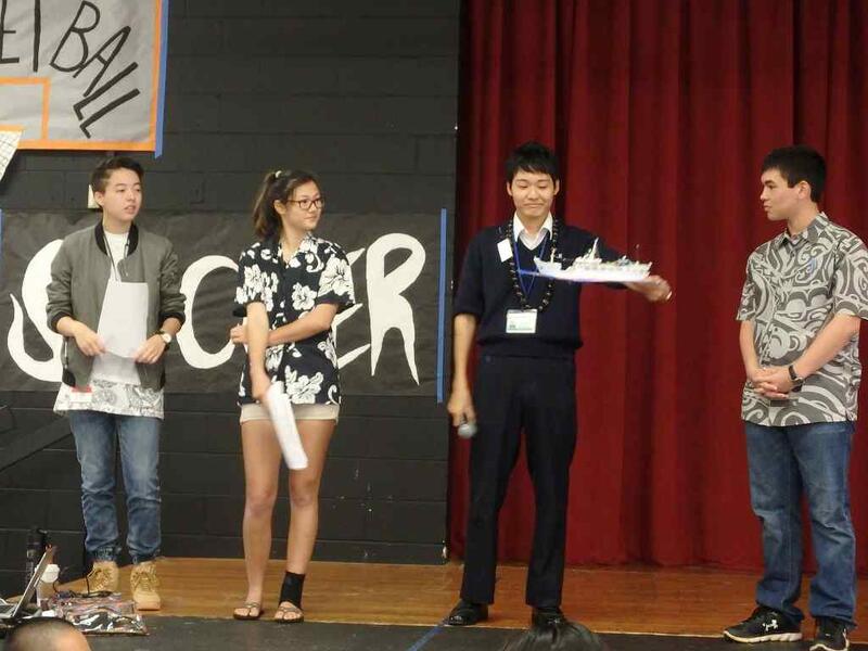 総会終了後に、海の宝アカデミックコンテスト2016に参加して優秀な成績をおさめた水産科学同好会の発表が行われました。全国上位入賞を果たしたほどの、工夫をこらした分かりやすい発表で、会場の保護者からは拍手が上がっていました。