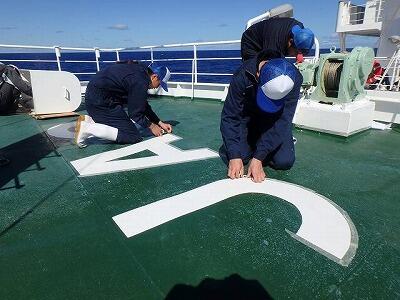 実習生は明日の三崎入港に備え、入港準備作業中です