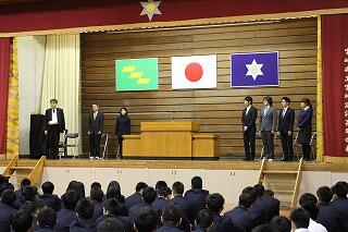 旧生徒会長から、生徒会旗が授与されました。