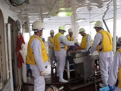 半日は3系それぞれの実習を体験し、残りの半日は進洋丸に乗船するという内容でした。