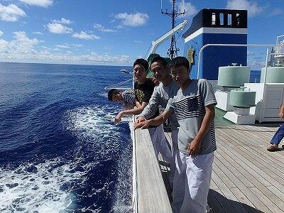 昨日14時50分小笠原 二見出港しました。熱帯低気圧を避けて北上しています。波高く、実習生は船内作業と課題研究発表の準備をしています。