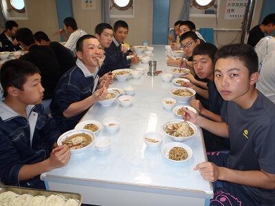 早起きが苦手なせいか、朝食を完食できない実習生がいる一方で、揚げ縄