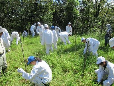 本校生は、1年間にわたって学校の前にある後田川公園(緑道)の