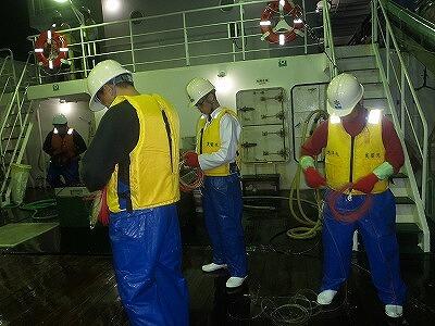 操業2日目、投縄班が変わって縄を入れました。