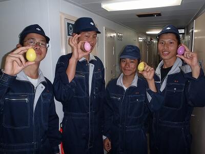 昨日は船舶保安操練で危機管理意識を高め、その後、夕食まで実習生に