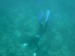 下に潜っている先生からエアーを貰って潜水を続けます。