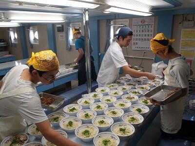 最後の船酔い実習生もすっかり適応し、『爽やかに吐いては食当を続ける』といった達人ぶりを
