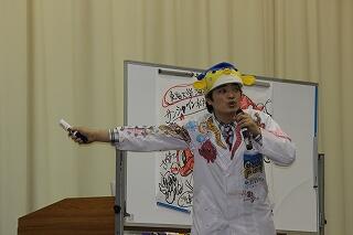 テレビでもおなじみの東京海洋大学客員准教授「さかなクン」氏が来校され、本校体育館に於いて講演をしてくださいました。