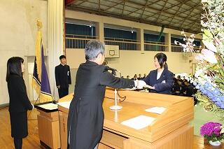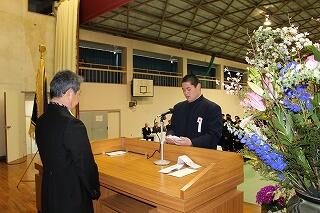 平成26年度 第65回卒業式が行われました。卒業生107名一人一人が壇上に上がり、校長より卒業証書が手渡しされました。BGMは音楽教科担任の生演奏という豪華な演出、厳かな雰囲気のなか進行していきました。