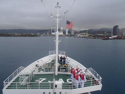 各船とハワイ宮崎県人会から盛大な見送りを受け、ホノルルを出港しハワイ諸島南方を日本向け全速航海中です。
