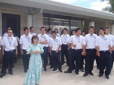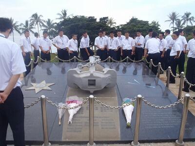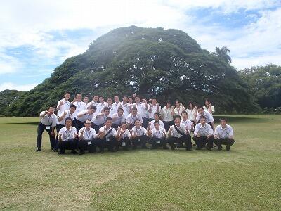 入港2日目。 早朝より実習生はカカアコ公園のえひめ丸慰霊碑に赴き献花を行いました。
