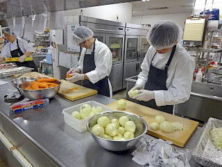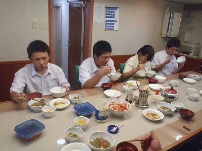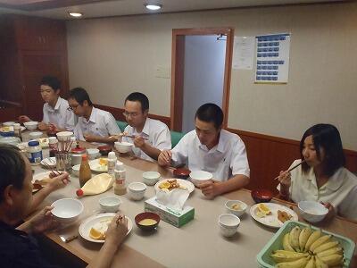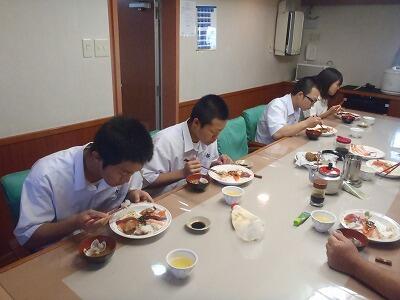 船酔いも全快し食欲旺盛。大揺れのサロン会食実習でもお代わりしています。