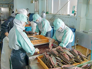 販売製品:進洋マグロ油漬缶詰,イカ一夜干し,アジ開き