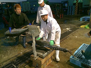 写真は、神奈川県三崎での水揚げ・税関検査の様子になります。