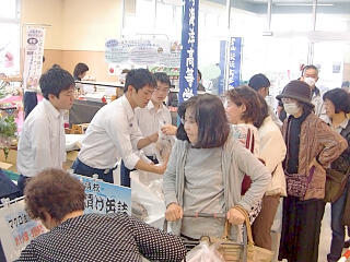 2年生にとっては初めての販売実習でした。今回は,実習製品の販売だけでなく,長期乗船実習で捕ったマグロの切り身も販売しました。