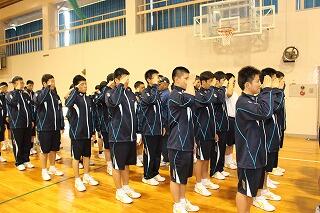 1年生の集団訓練がありました。水産海洋基礎(実習)での整列の仕方やあいさつ(敬礼)などを学びました。初めての敬礼。いかがですか?
