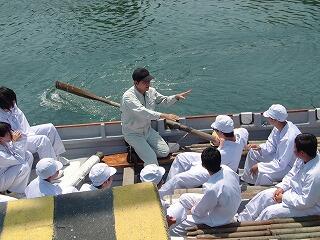 次に艇庫へ移動して、カッター訓練についての説明を受けました。「カッター思ったより大きいなぁ。自分も漕げるかなぁ。」