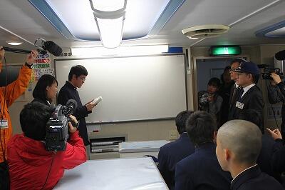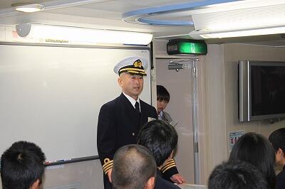 船内でとりおこなわれた帰港式での校長先生お出迎えの挨拶です。