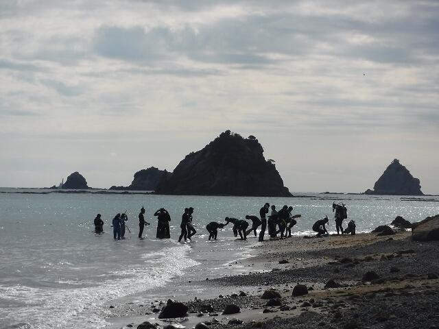 11月19日(木)に、3年B組 海洋機器類型の生徒17名で、日南市南郷町栄松海水浴場にてダイビング実習をおこないました。