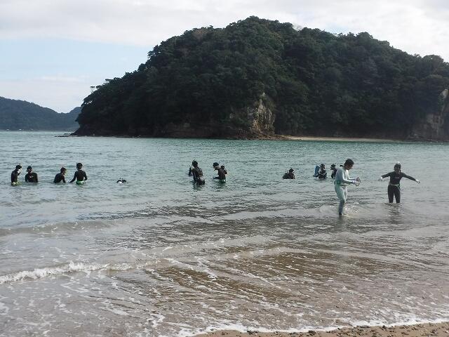 気温・海水温ともに最高のコンディションでしたが、前日まで降り続けた雨の影響で視界が悪い状況での実習となりました。