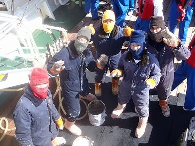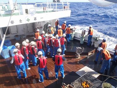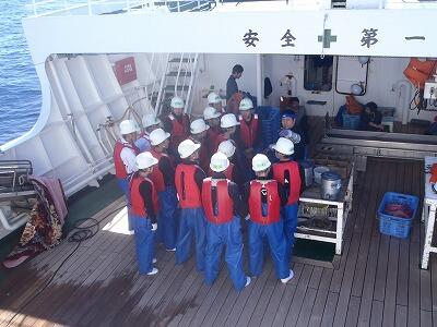 風波強い中、34日間の操業実習に総員元気で臨みます。