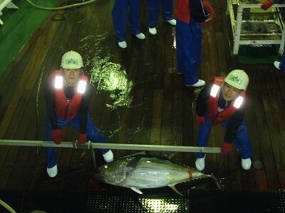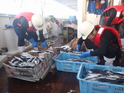 デッキに引き揚げられる魚のサイズが良いと実習生から歓声が上がります。