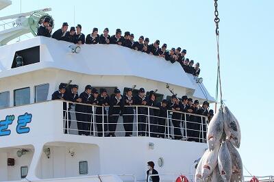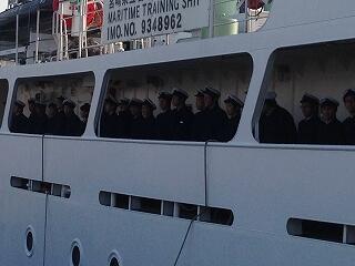 乗組員、指導教官の先生方、実習生全員の元気な姿が拝見できました。今航海の経験を今後の高校生活に十分に生かしてもらいたい。