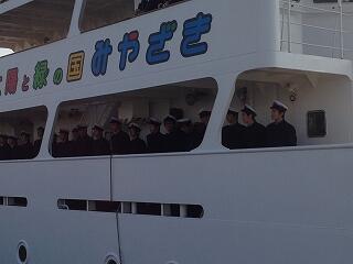 宮崎入港は、3月20日 8時予定。 帰港式は10時からおこなわれる予定です。