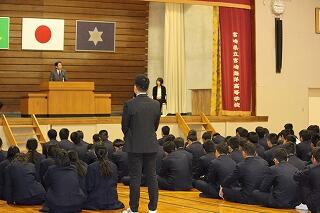 春休みでしたが多くの生徒が出席し、先生方の最後の言葉を聞いていました。
