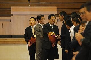 本日、転退職の先生方の離任式が体育館で行われました。