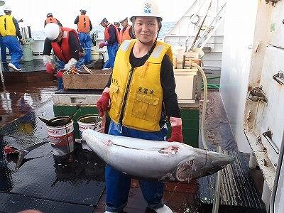 昨夜は揚げ終わり前に、大きめのクロカワ(クロカワカジキ)が揚がり、作業班は大きなカジキに興奮気味でした。