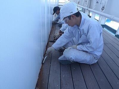 船体手入れ中です。(帰り航海は船体を綺麗にして帰ります)