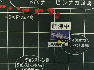 次第に風とうねりが収まって来ました。 実習生はハワイ土産品の税関申告の準備が始まり今からあたふたしています。 午後は操練を実施します。