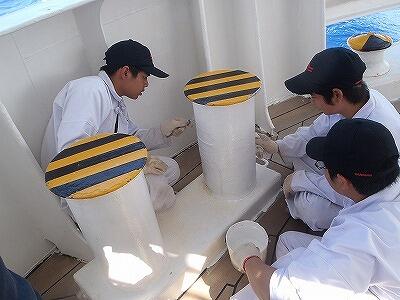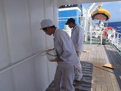 船体手入れ中です。(帰り航海は船体を綺麗にして帰ります)