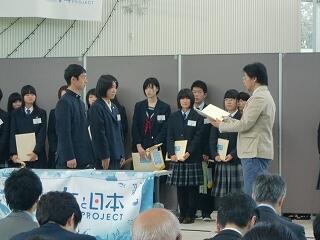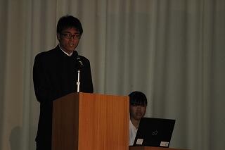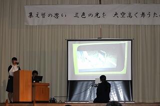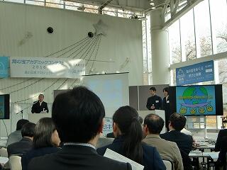このコンテストは、海に関する科学、芸術、文化、食、環境など、個人またはグループの視点で海の宝を電子紙芝居8枚で表現して下さいというもので、本校の水産科学同好会から4作品をエントリーしました。1次選考を突破した「海洋微生物は海の宝」が13日に行われた最終選考会に出場になりました。21人の審査員に緊張しつつ、黒木君の元気のよい発表は審査員に「インパクト」を与えたようです。これからもいろんな視点をもって、海を見つめ研究活動を行っていきます。