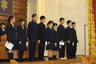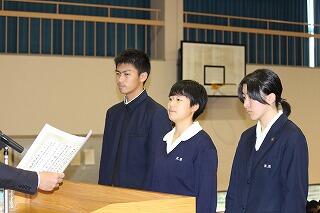 2学期終業式・表彰伝達式・生徒会役員任命式が行われました。