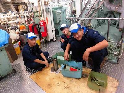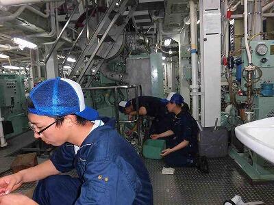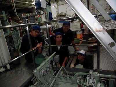 2Aの生徒は航海系のクラスですが、機関当直(作業)も体験します。