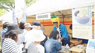 5月13日(土)、14日(日)に、生目の杜運動公園で「食フェスタinみやざき2017」が開催されました。13日(土)はマグロの解体・ふるまいが行われ、本校水産食品類型3年生が参加しました。天候はあまり良くなかったのですが、たくさんのお客様がお越し下さいました。