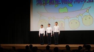 5月19日(金)に行われた、宮崎県産業教育振興会総会において、本校海洋科学科 水産食品類型3年、黒木賢斗君、溝口 樹君、宮元優光君が課題研究と部活動の取り組みについて発表した。