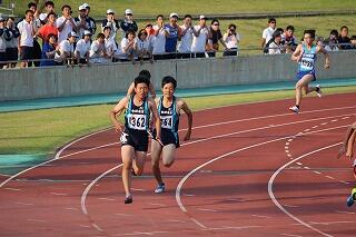 陸上競技 男子4×100mR 1走で素晴らしいスタートダッシュを見せたキャプテンの小牧君。