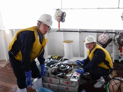 です。 実習生も投縄揚縄ともに作業の流れが分かりはじめ、とまどいが少し