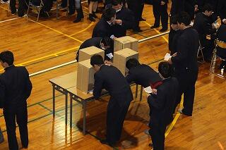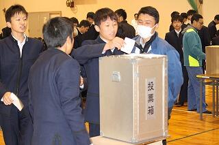 生徒は、この投票所入場券を投票用紙と交換し、投票を行いました。