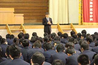 学校長は「蚤(のみ)」の特性について説明され、自分の可能性にふたをせず、大きくはばたく人材になってほしいと話がありました。