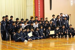 九州地区生徒研究発表大会で最優秀賞の黒木君、宮元君、溝口君
